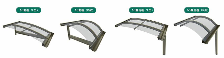 款式:A3款窗棚(L、R型)、A3款露台棚(L、R型)